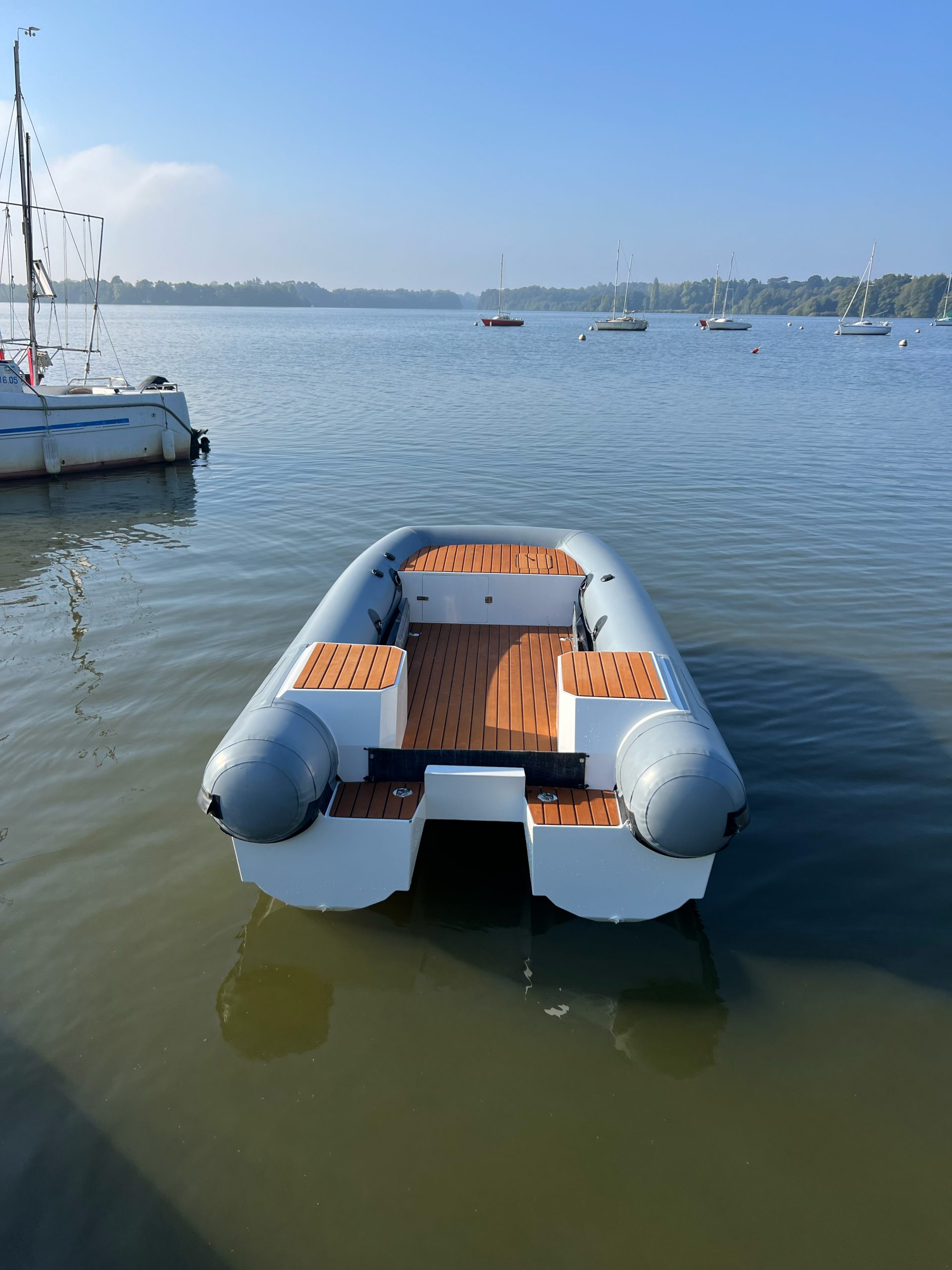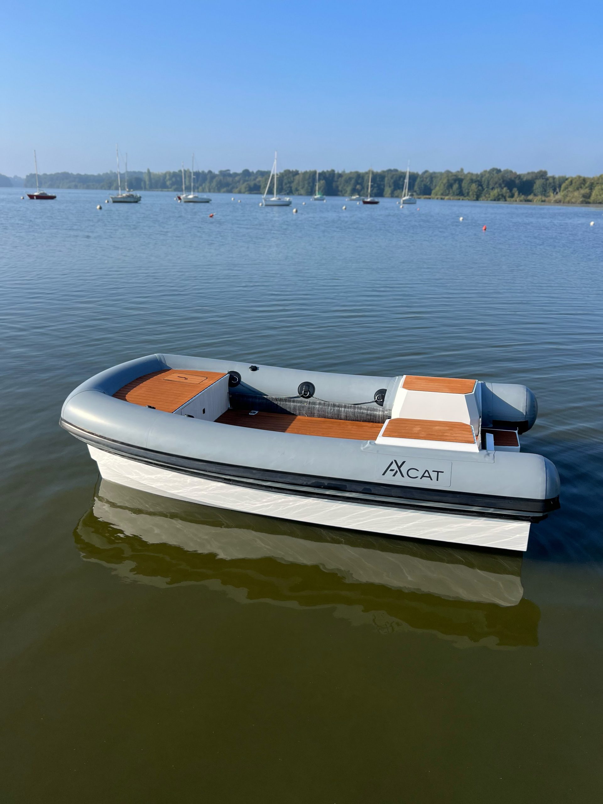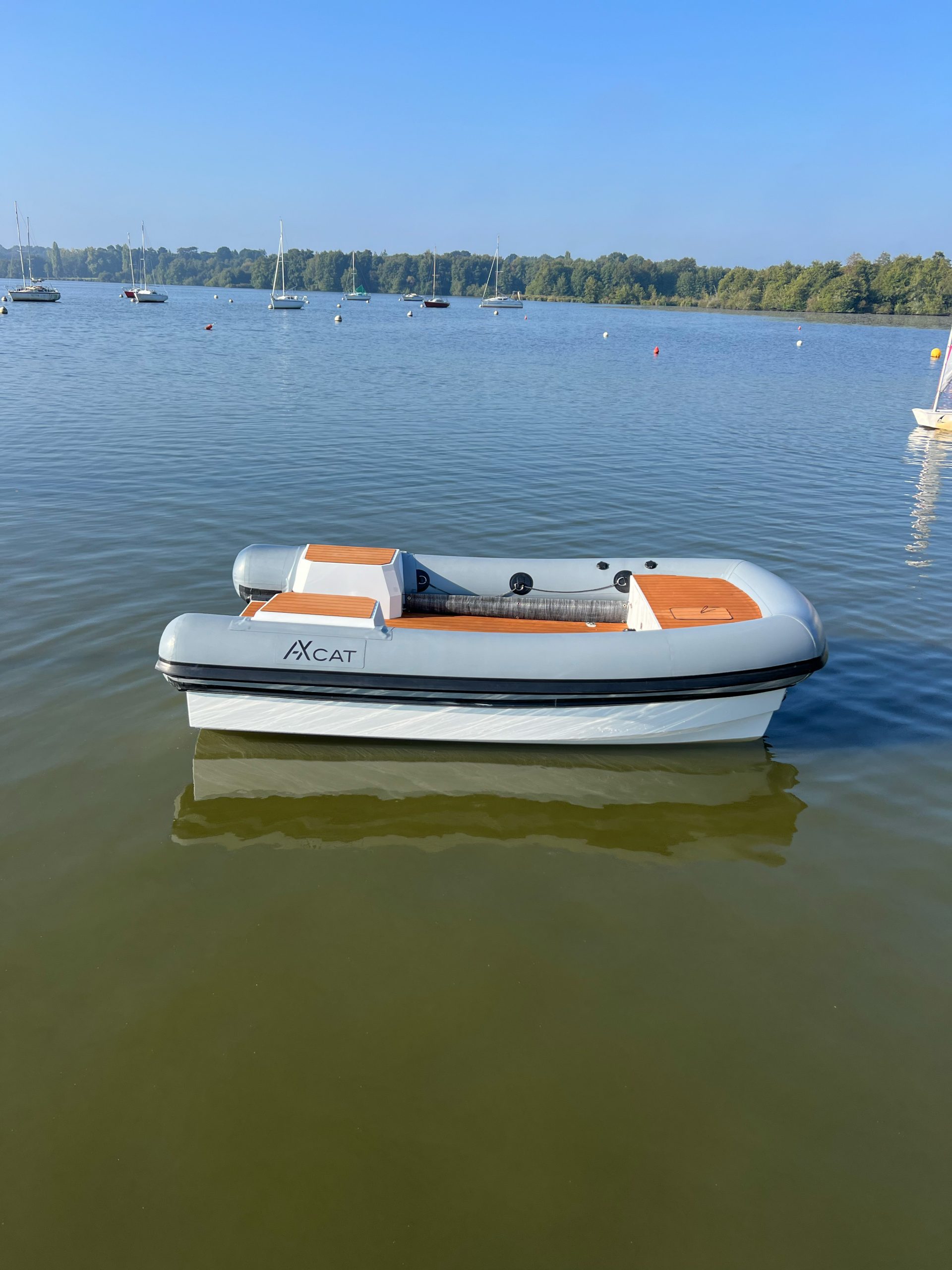 L’AXcat un bateau stable, sécurisant, léger et polyvalent, qui combine l’esprit pratique du semi-rigide avec le confort d’un catamaran